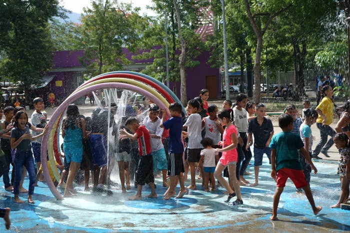 Water fights and chases through fountains, that's how you break down fear-fuelled stigmas and make new friends.