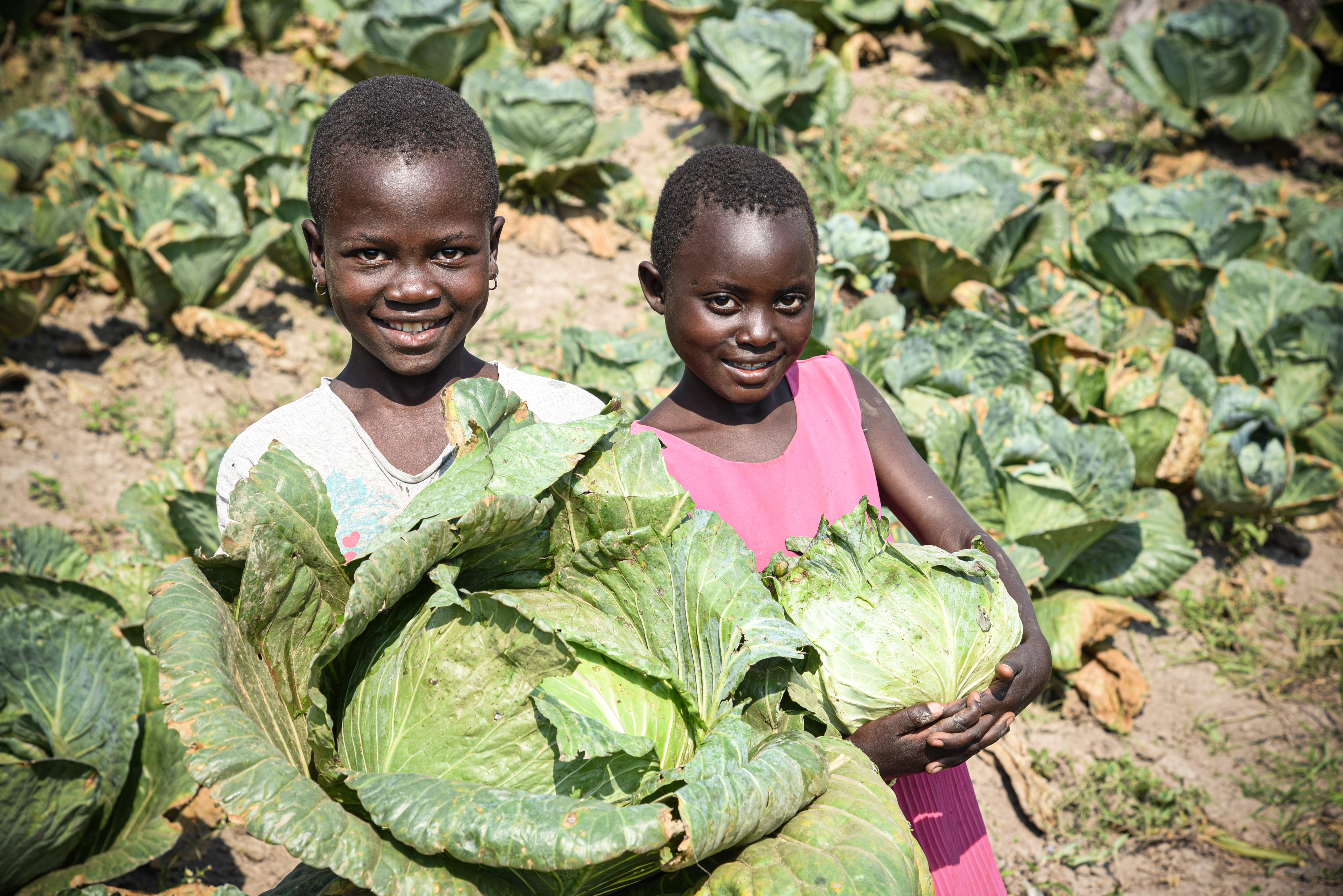 Estha and her friend Dorika in their family field. '’Estha's favourite meal is cabbage with rice, she really loves this meal'' says her mother, Abetina.
