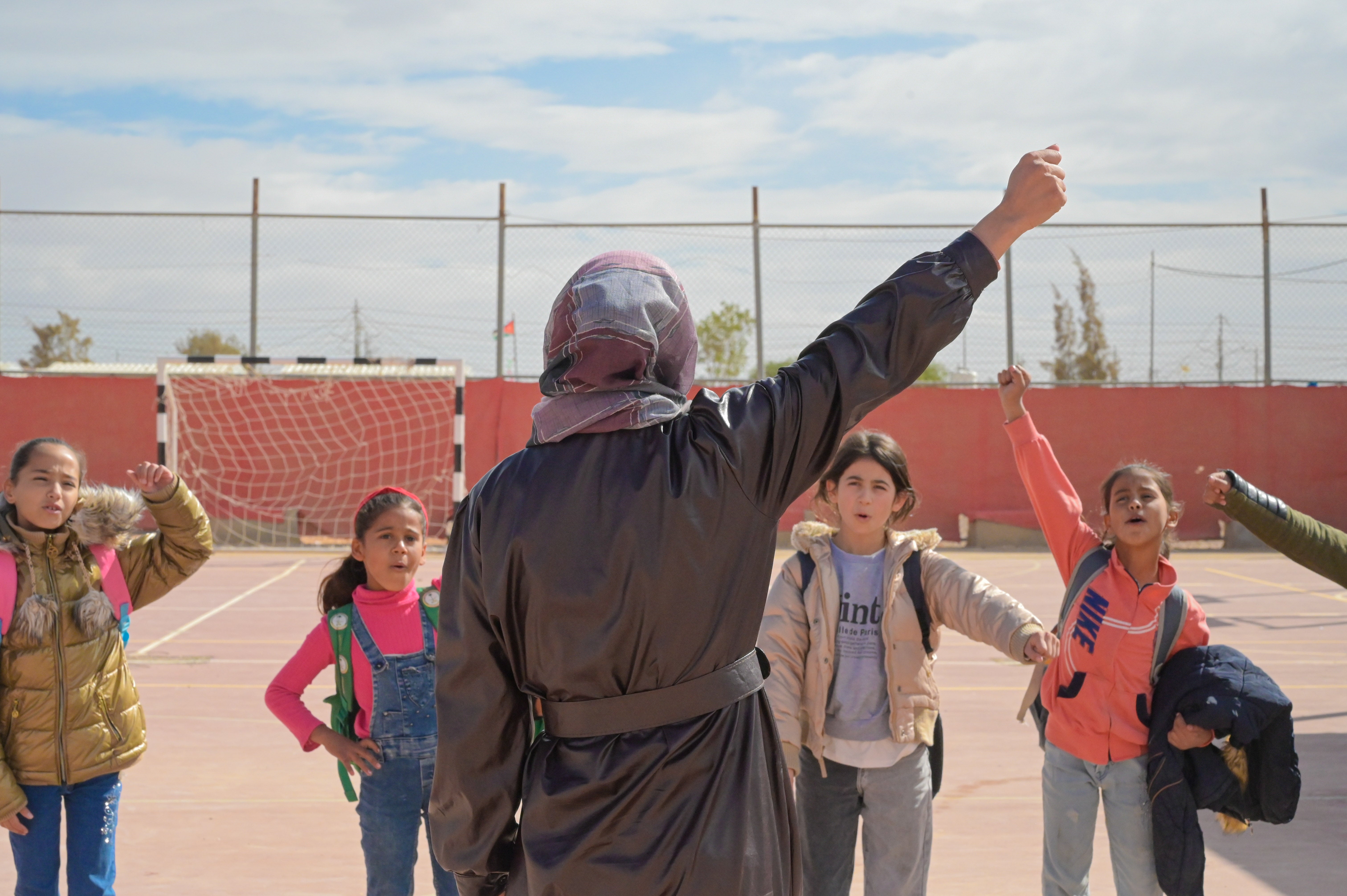 Young Syrian girls getting all primed up for an afternoon of sports and activities promoting play, peace and resilience.