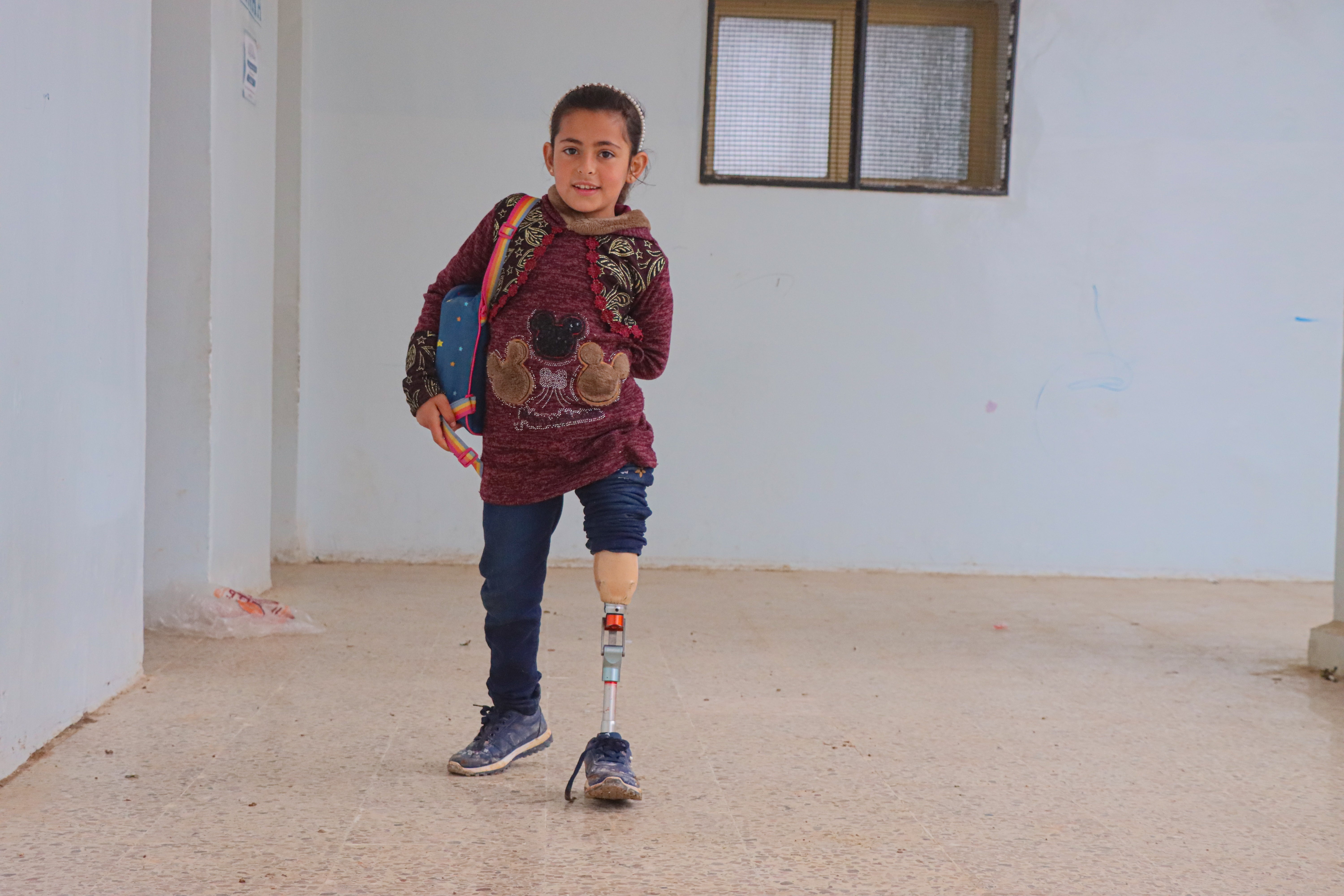 Firyal is a nine-year-old Syrian child whose reality reflects more than 80 thousand Syrians. “In 2014 and while my daughter was walking her first steps, we were hit (by an explosive), my child was injured. In the end, we had no choice but to amputate her left leg under the knee,” Firyal's father recalls.