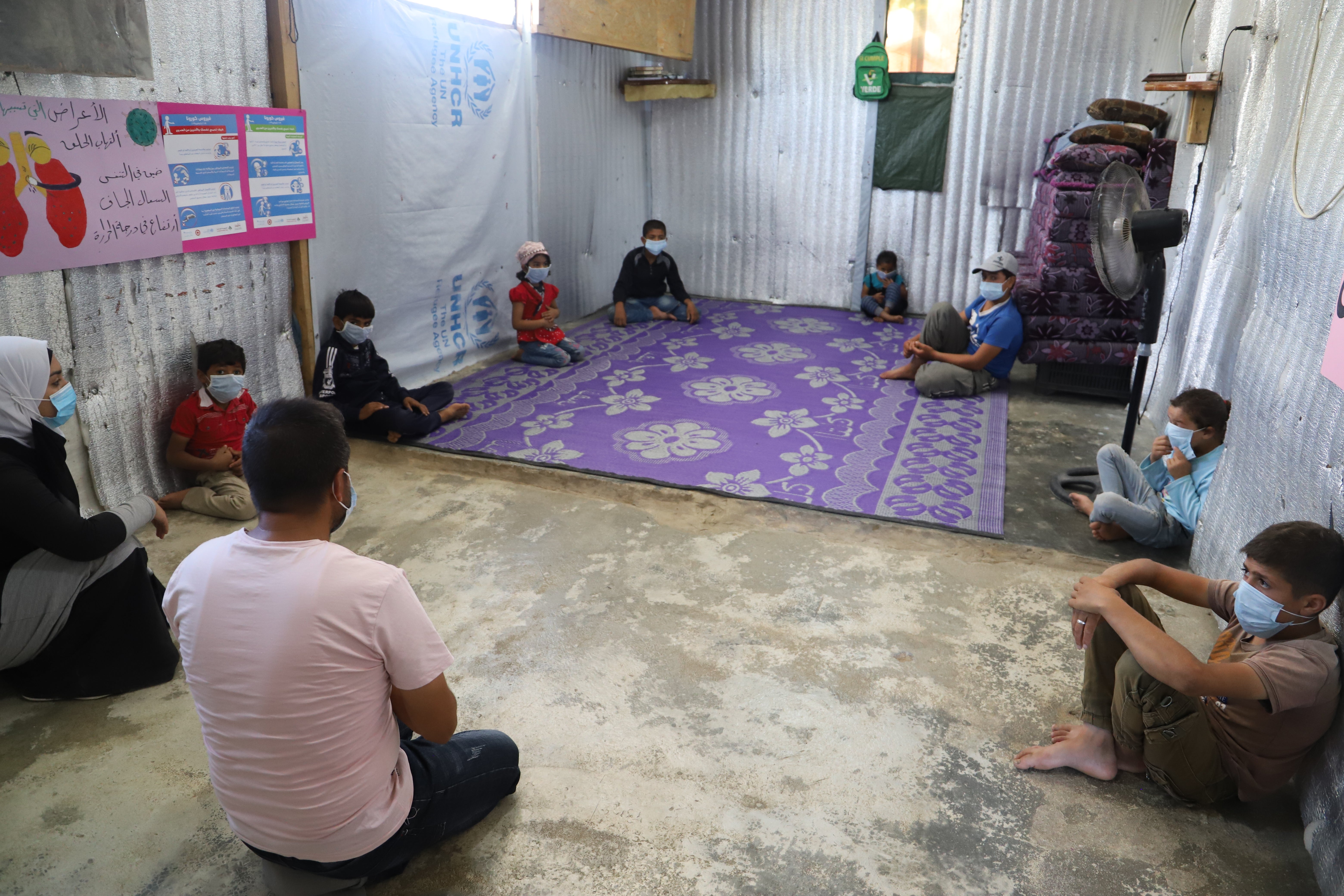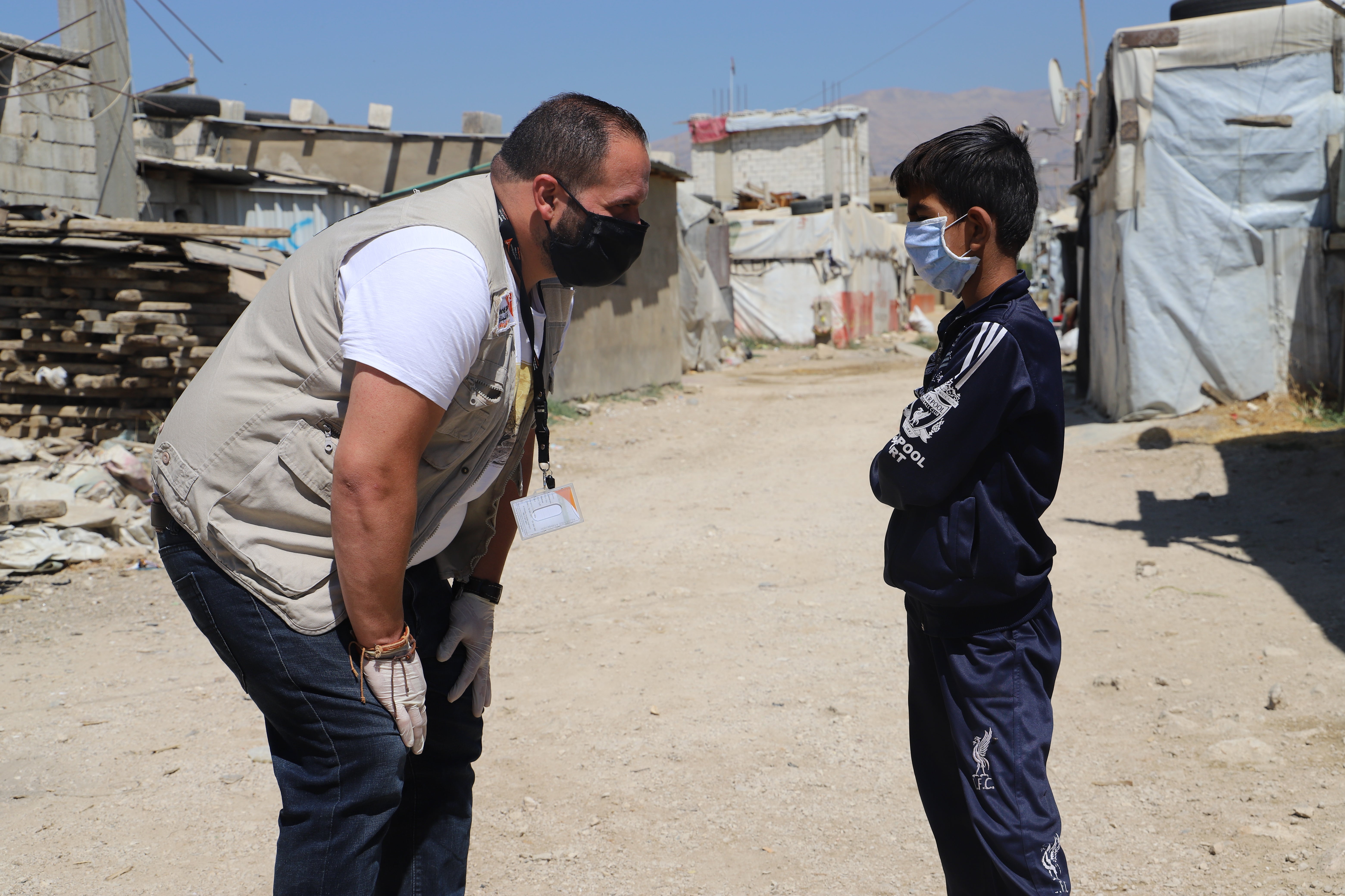 Aziz speaks with Adel Abou Hanna, a World Vision CFS educator and outreach facilitator.