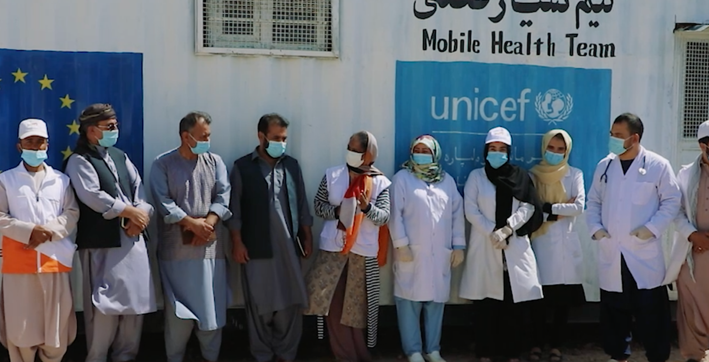 Asuntha Charles, Afghanistan National Director meets and thanks the courageous staff who have chosen to return to work. Because of them thousands of children and mothers are receiving urgent health care via our mobile health clinics.